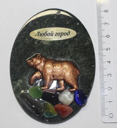 Магнит Медведь вид сбоку малый, змеевик АМ-46.ОПТ