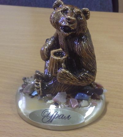 Скульптура "Мишка с кружкой", подставка селенит, ОПТ 299 ₽ В корзину В корзину Закажите название Вашего города. Закажите название Вашего города. Описание Комментарии 0 Описание Скульптура декорирована натуральными самоцветами. Комментарии 0 Добавить комментарий ТАКЖЕ РЕКОМЕНДУЕМ:Магнит Медведь с балалайкой самоцветы, арт А-92. ОПТ 225 ₽В корзинуКролик с морковкой.ОПТ 330 ₽В корзину