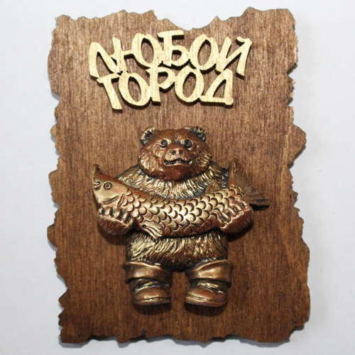 МАГНИТ НА ДЕРЕВЕ МЕДВЕДЬ С РЫБОЙ СТОИТ. ОПТ