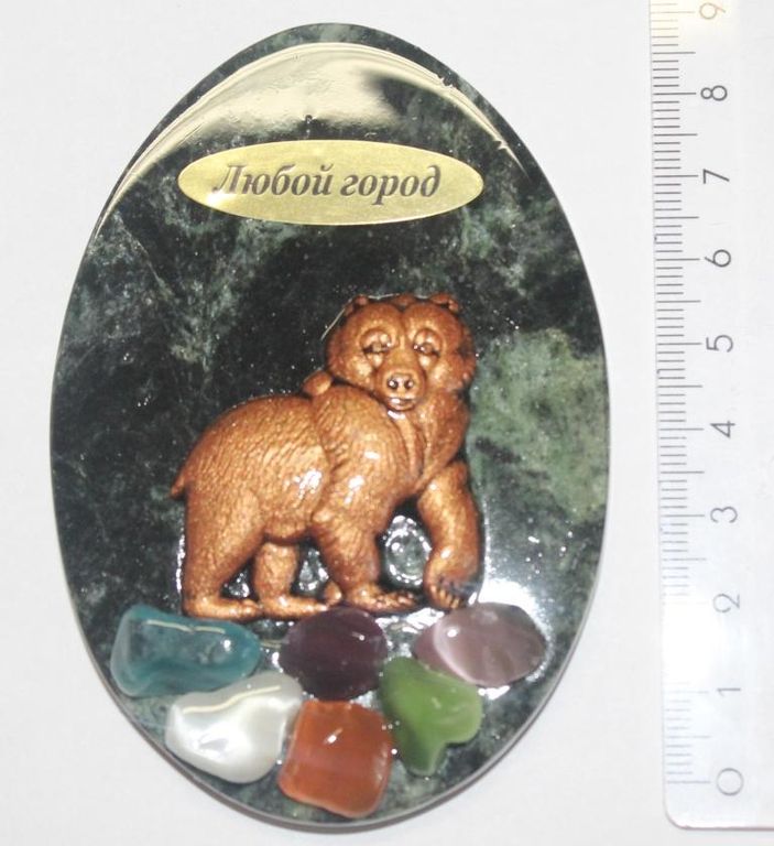Магнит Медведь Топтыга, змеевик АМ-54.ОПТ 299 ₽ В корзину В корзину Магниты с натуральными камнями, изготовлены вручную российскими мастерами. Заказывайте сувенирные магниты с названием Вашего региона, края, города, поселка! Магниты с натуральными камнями, изготовлены вручную российскими мастерами. Заказывайте сувенирные магниты с названием Вашего региона, края, города, поселка! Описание Комментарии 0 Описание Магнит декорирован натуральными самоцветами. Комментарии 0 Добавить комментарий ТАКЖЕ РЕКОМЕНДУЕМ:Волк, подставка селенит. ОПТ 285 ₽В корзинуБрелок "С бубном".ОПТ 128 ₽В корзину