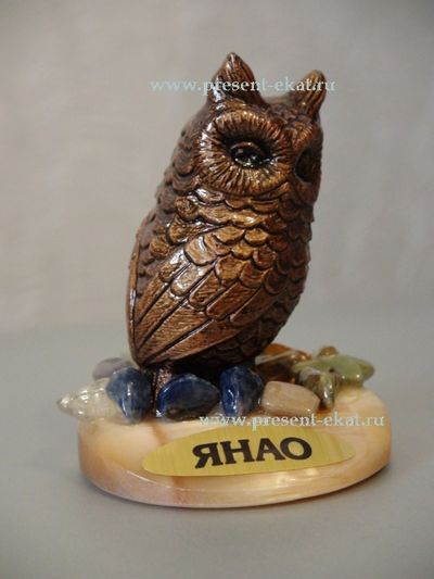 Фигурка птицы: гипс, подставка: селенит, декор: самоцветы.